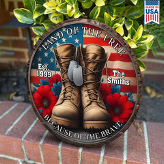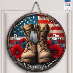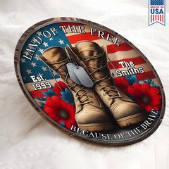 Available Product: Because Of The Brave - Personalized Veteran Round Wood Sign