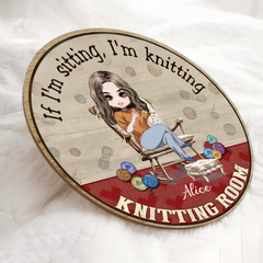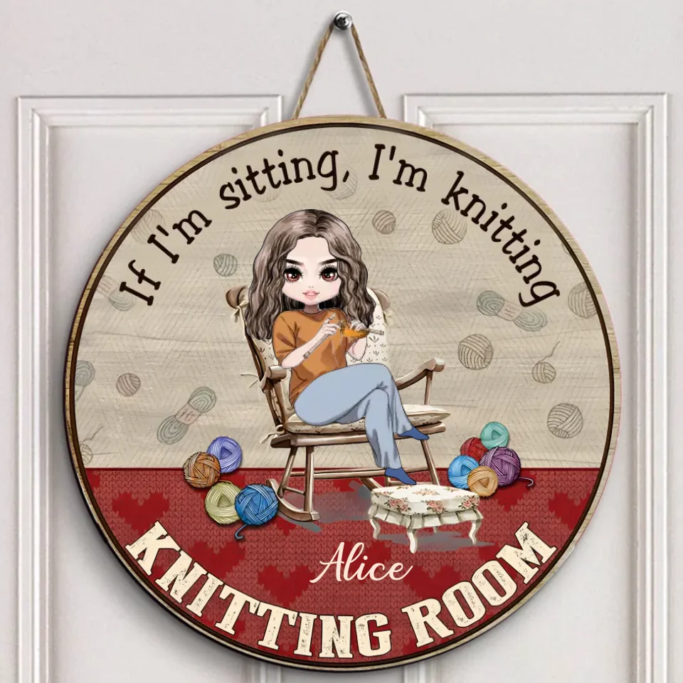 If I'm Sitting I'm Knitting - Personalized Knitting Round Wood Door Sign