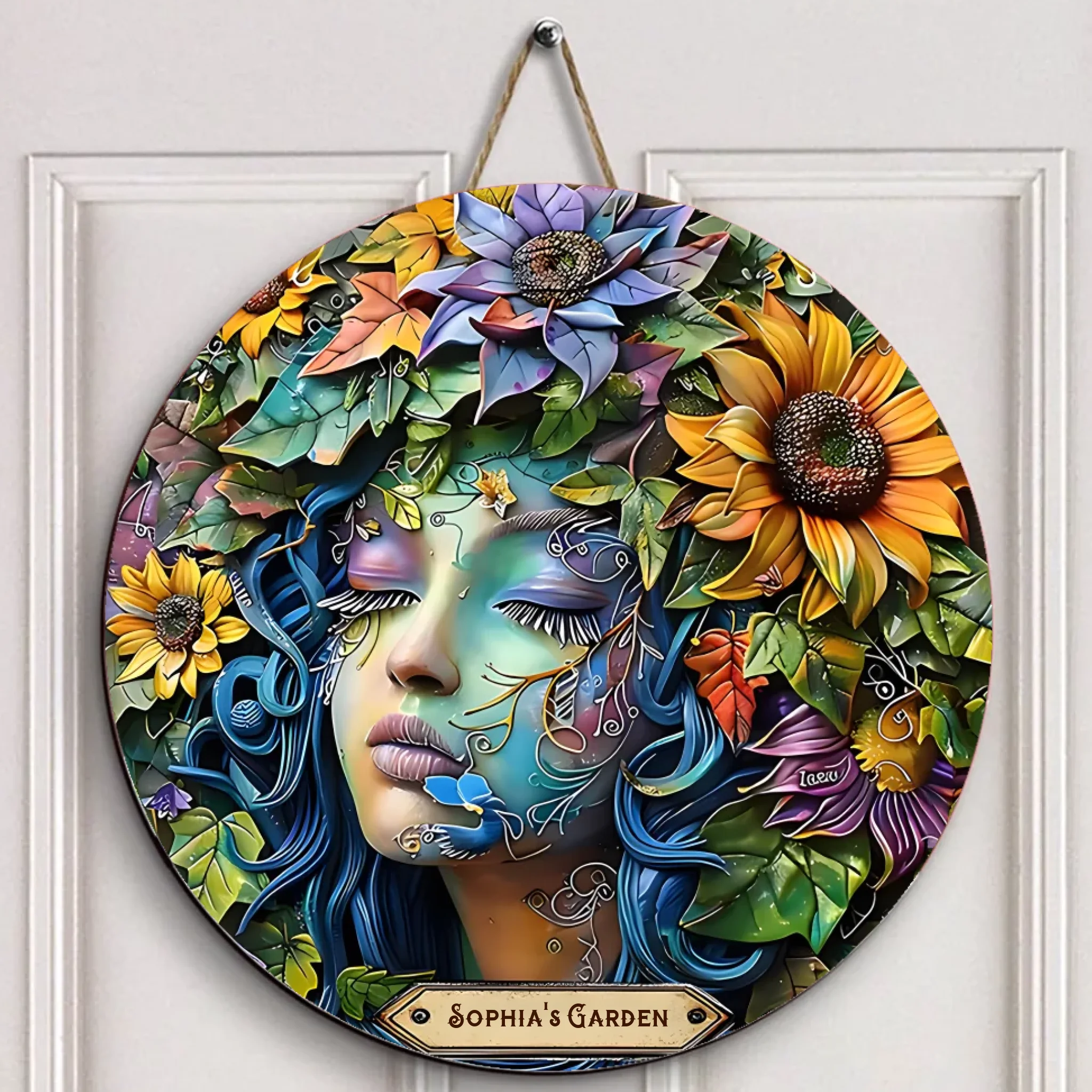 My Garden - Personalized Gardening Round Wooden Door Sign