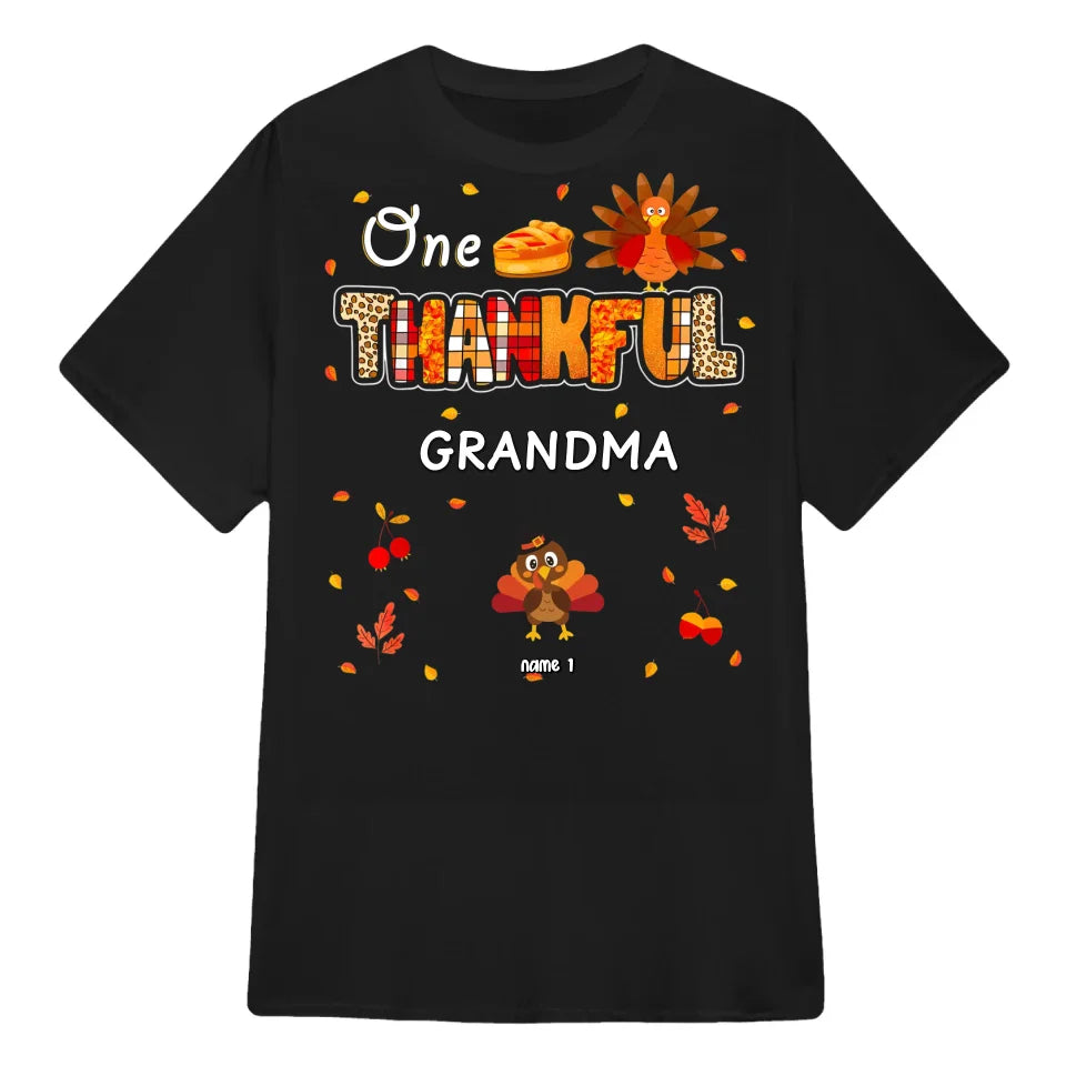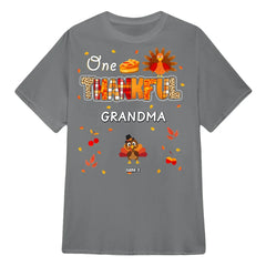 One Thankful Grandma Little Turkeys - Personalized Custom T Shirt - Thanksgiving, Birthday, Loving, Funny Gift for Grandma/Nana/Mimi, Mom, Wife, Grandparent