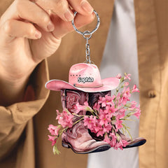 Personalized Boots And Hat With Flower Cowgirl / Cowboy Acrylic Keychain