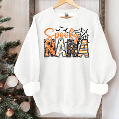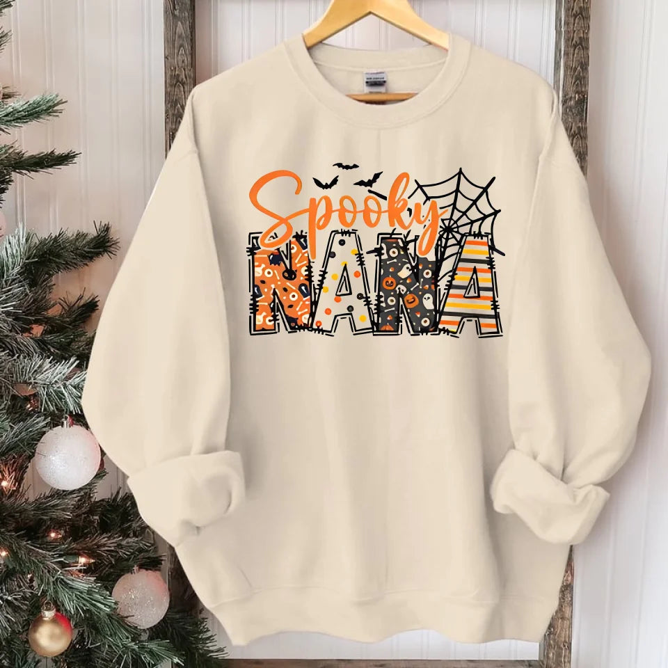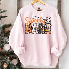 Personalized Spooky Mama Grandma Pumpkin Bat Design Sweatshirt Halloween Costume Gift for Women