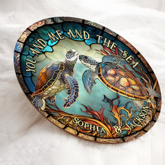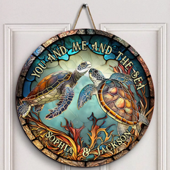 Turtle Couple Turtle gift for husband, wife, boyfriend, girlfriend - Personalized Round Wood Door Sign